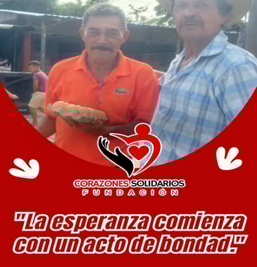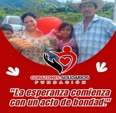 "Nuestra misión nace del corazón: estar presentes donde otros no llegan. Acompañamos a familias vulnerables con amor, alimentos, escucha y esperanza. Porque donde hay necesidad, también puede florecer la solidaridad."